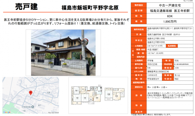 飯坂町平野字北原 6DK 1,890万円 1995年新築の新耐震物件です。