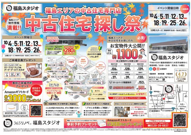 10月も毎週土曜日・日曜日に『中古住宅×リノベフェア』を開催致します。
