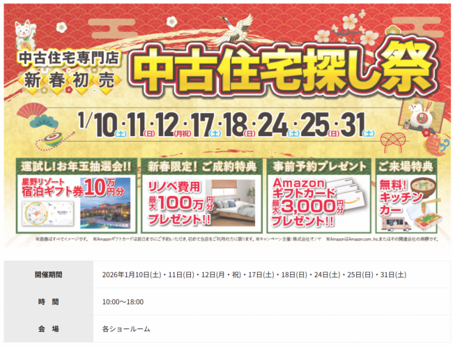 トップページ > スタッフブログ > 豪華特典多数!2026年1月 新春初夢 中古住宅探し祭