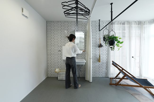 福原モデルは洗濯機の横に干すクリーンが設置されており、部屋干し可能な空間になっております。