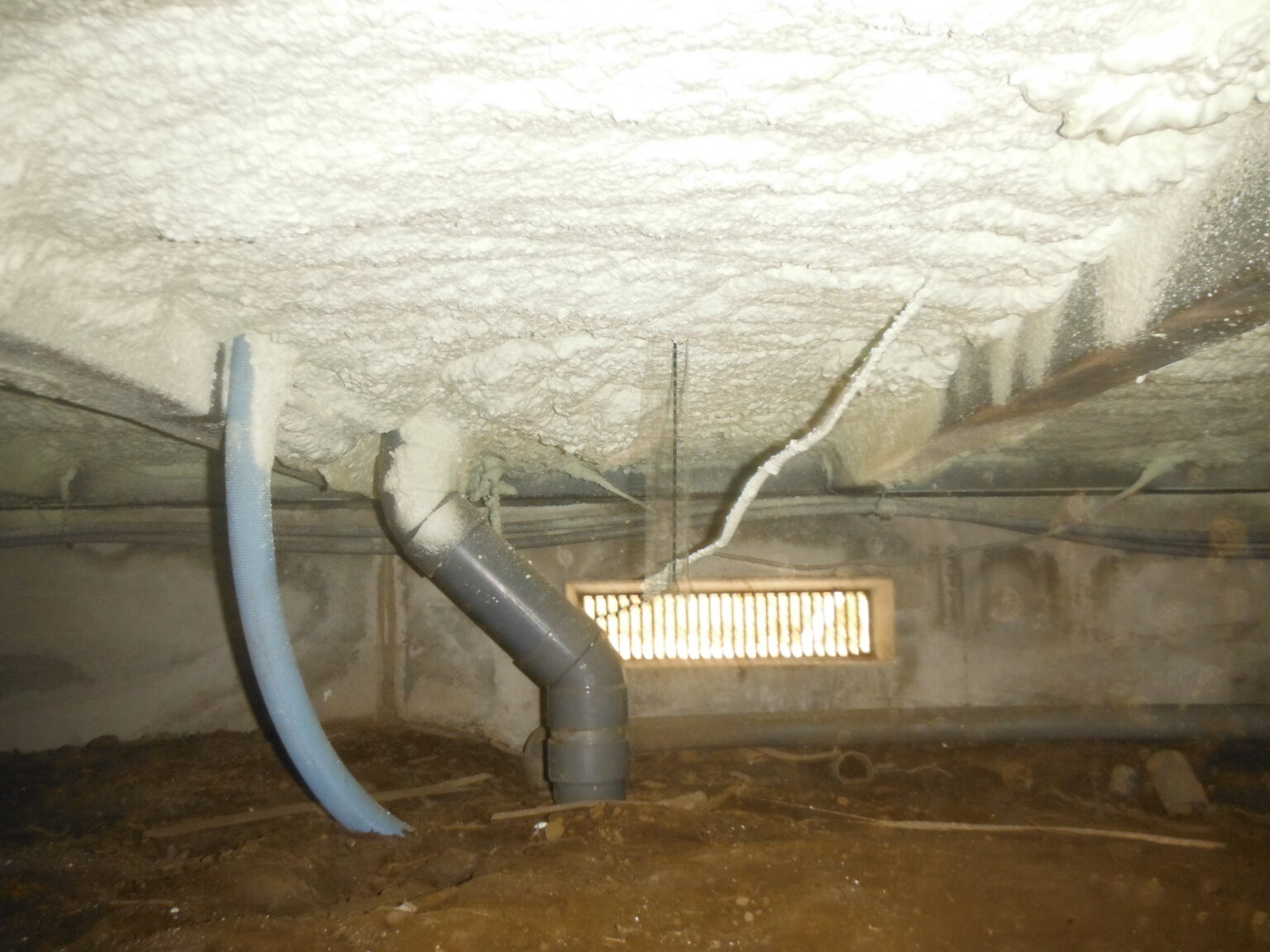 最後に床下吹付断熱施工になります。こちらは床を壊さずに職人さんが床下に潜って1F全域に施工できますので全体的に床下断熱が可能です。工事期間も短縮できます!