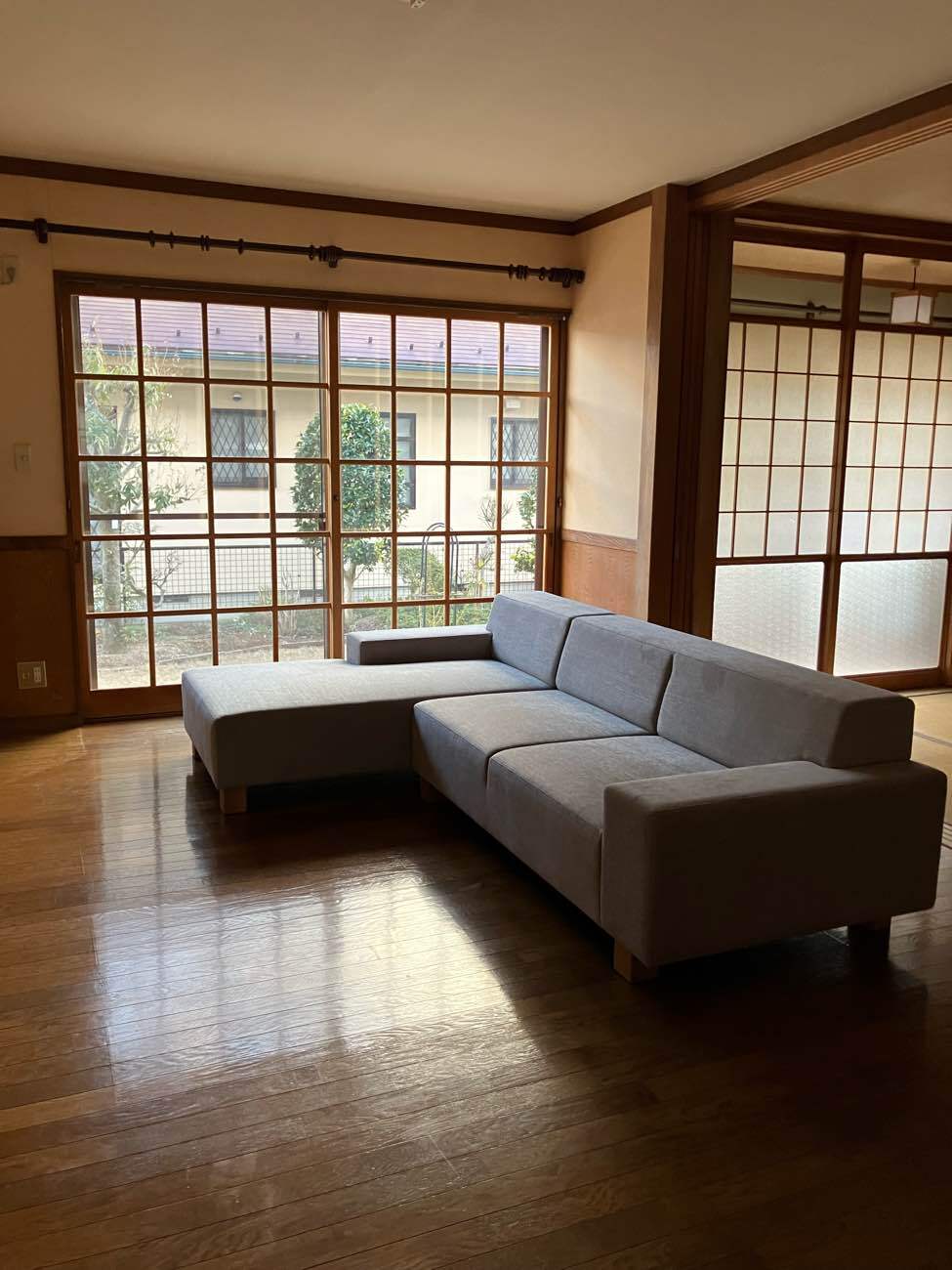 直線的な洗練されたデザインのローソファで、圧迫感なく空間になじみます。