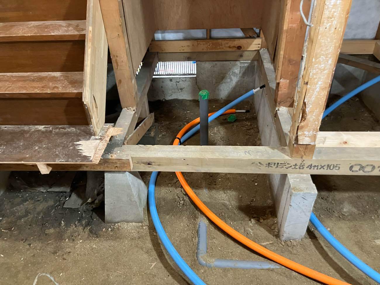 写真にオレンジと青の配管が見えるかと思います。