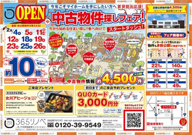 〇イベント名: 中古物件探しフェア in 仙台南スタジオ