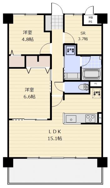 | 間取り | 2SLDK | 間取り内訳 | 5FLDK15.1畳×1室 5F洋6.6畳×1室 5F洋4.8畳×1室 5FS3.7畳×1室 |