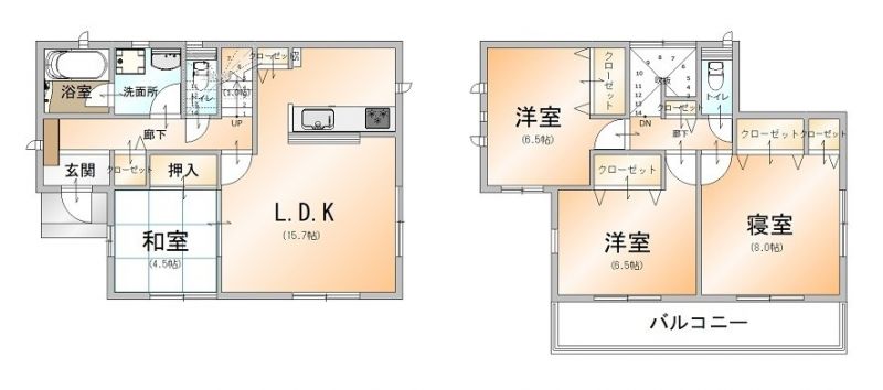 | 設備 | 温水洗浄便座、トイレ2ヶ所、追焚機能、浴室乾燥機、システムキッチン、カウンターキッチン、床下収納、洗髪洗面化粧台、電気、プロパンガス、上水道、浄化槽、複層ガラス、エアコン、モニタ付インターホン、ルーフバルコニー、物置/駐車場4台分(カーポート2台分)/太陽光発電システム | ||