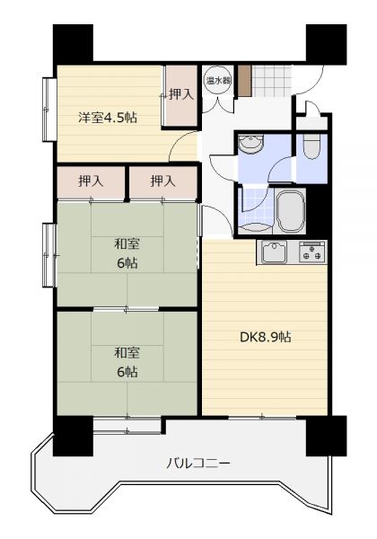| 間取り | 3DK | 間取り内訳 | DK8.9畳 和6畳 和6畳 洋4.5畳 |