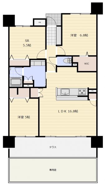 | 間取り | 2SLDK | 間取り内訳 | 1FLDK16.8畳×1室 1F洋6.8畳×1室 1F洋5畳×1室 1FS5.5畳×1室 |