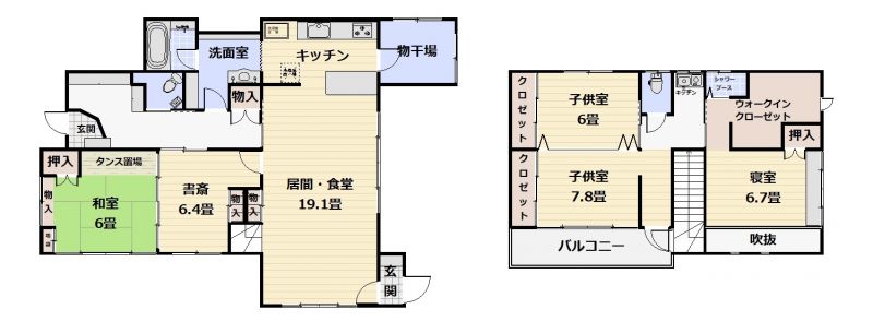 LDK19帖各居室6帖以上で2階には大きなWICがあるので収納には困りません◎