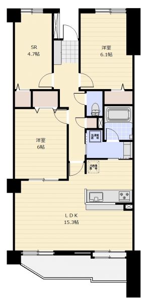 間取り | 2SLDK | 間取り内訳 | LDK15.3畳×1室 洋6.1畳×1室 洋6畳×1室 S4.7畳×1室 |
