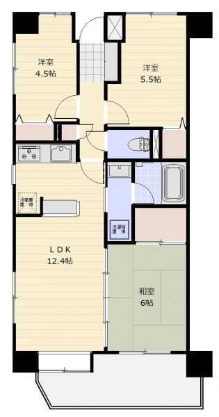 | 間取り | 3LDK | 間取り内訳 | LDK12.5畳×1室 洋5.5畳×1室 洋4.6畳×1室 和6畳×1室 |