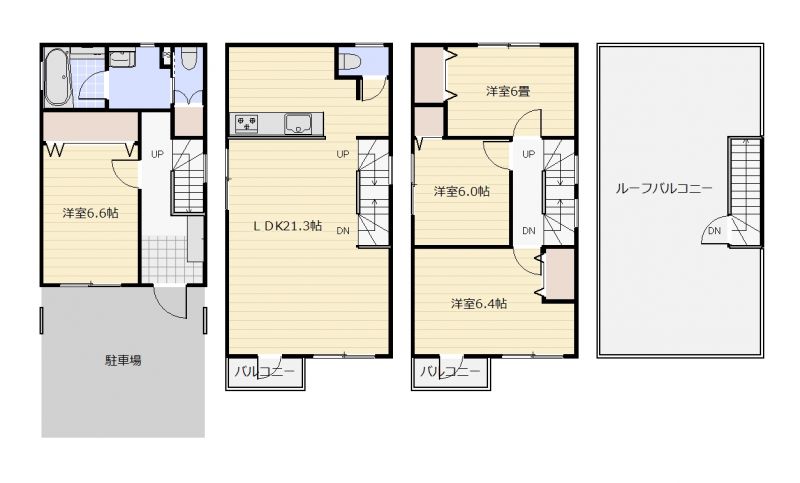 | 設備 | 温水洗浄便座、浴室乾燥機、システムキッチン、洗髪洗面化粧台、照明器具、都市ガス、上水道、下水道、エアコン、モニタ付インターホン、駐車場2台分 | ||