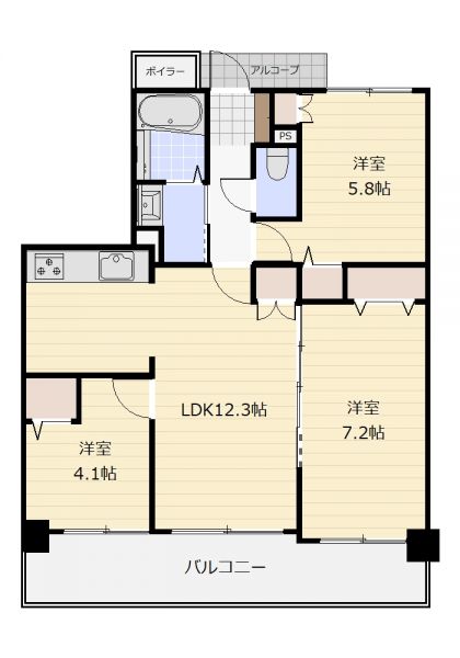 | 間取り | 3LDK | 間取り内訳 | LDK12.3/洋7.2/洋5.8/洋4.1 |