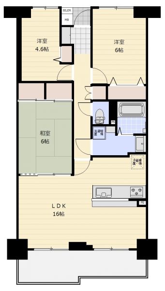| 間取り | 3LDK | 間取り内訳 | 洋6畳×1室 洋4.6畳×1室 和6畳×1室 LDK15.9畳×1室 |