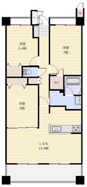 | 間取り | 3LDK | 間取り内訳 | LDK15.4畳×1室 洋7畳×1室 洋6畳×1室 洋5.4畳×1室 |
