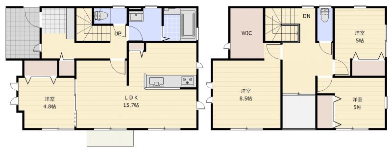 | 間取り | 4LDK | 間取り内訳 | 洋4.8畳×1室 洋5.1畳×2室 洋8.5畳×1室 LDK15.7畳×1室 |