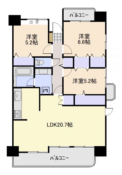 | 間取り | 3LDK | 間取り内訳 | LDK20.71/洋6.6/洋5.2/洋5.2 |