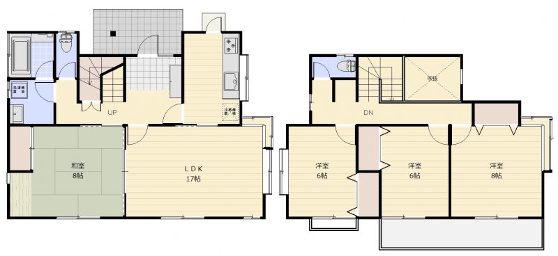 | 設備 | 温水洗浄便座、トイレ2ヶ所、追焚機能、システムキッチン、洗髪洗面化粧台、モニタ付インターホン、駐車場2台分 | ||