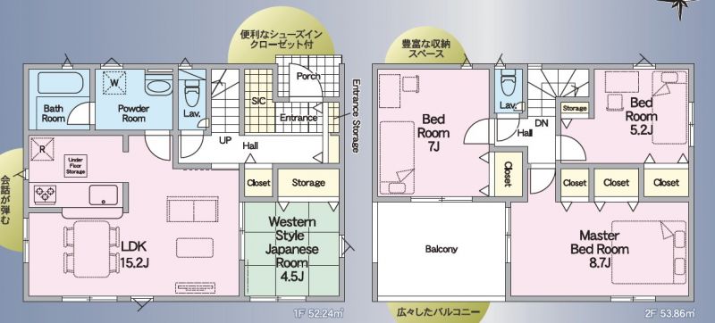 | 設備 | 温水洗浄便座、トイレ2ヶ所、追焚機能、浴室乾燥機、システムキッチン、カウンターキッチン、浄水器、床下収納、洗髪洗面化粧台、照明器具、電気、プロパンガス、上水道、下水道、モニタ付インターホン、ルーフバルコニー、駐車場3台分、[火災警報器等設置済][シューズインクローゼット] | ||