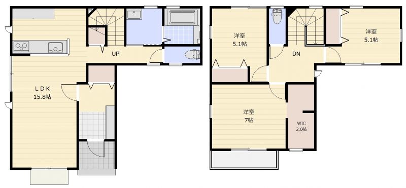 | 間取り | 3LDK | 間取り内訳 | 洋5.1畳×2室 洋7畳×1室 LDK15.8畳×1室 |