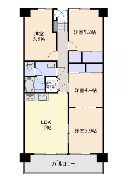 | 間取り | 3SLDK | 間取り内訳 | LDK10/洋5.9/洋5.8/洋5.2/S4.4 |