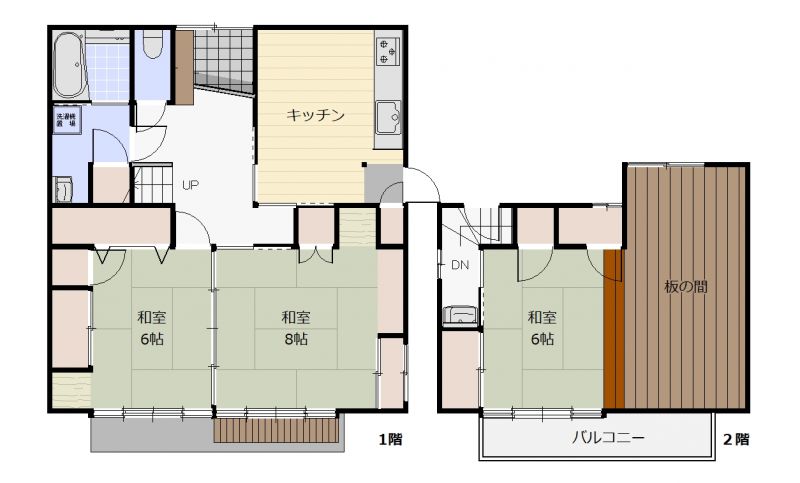 | 間取り | 3DK | 間取り内訳 | 1F和8畳×1室 1F和6畳×1室 2F和14畳×1室 |