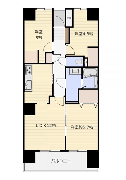 | 間取り | 3LDK | 間取り内訳 | LDK12畳 洋5.6畳 洋5畳 洋5畳 |