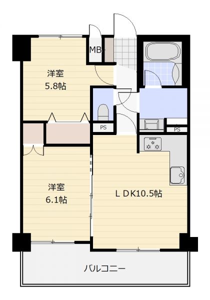 | 間取り | 2LDK | 間取り内訳 | LDK10.5/洋6.1/洋5.8 |