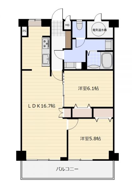| 間取り | 2LDK | 間取り内訳 | LDK16.7/洋6.1/洋5.8 |