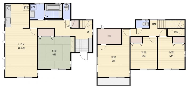 | 設備 | 温水洗浄便座、トイレ2ヶ所、追焚機能、システムキッチン、食器洗浄乾燥機、ウォークインクローゼット、都市ガス、上水道、下水道、モニタ付インターホン、庭、駐車場2台分、[バス1坪以上] | ||