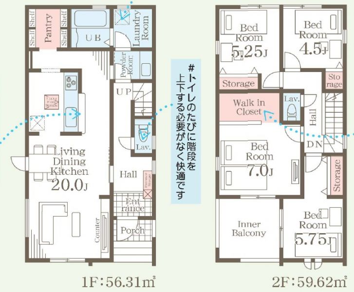 | 設備 | 温水洗浄便座、トイレ2ヶ所、追焚機能、浴室乾燥機、カウンターキッチン、浄水器、床下収納、洗髪洗面化粧台、照明器具、電気、プロパンガス、上水道、下水道、モニタ付インターホン、ディンプルキー、駐車場2台分 | ||