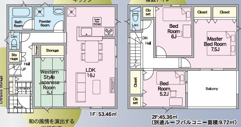 | 設備 | 温水洗浄便座、トイレ2ヶ所、追焚機能、浴室乾燥機、システムキッチン、カウンターキッチン、浄水器、床下収納、洗髪洗面化粧台、電気、都市ガス、上水道、浄化槽、複層ガラス、モニタ付インターホン、ディンプルキー、ルーフバルコニー、駐車場3台分、建設住宅性能評価取得(予定含む)[火災警報器等設置済] | ||