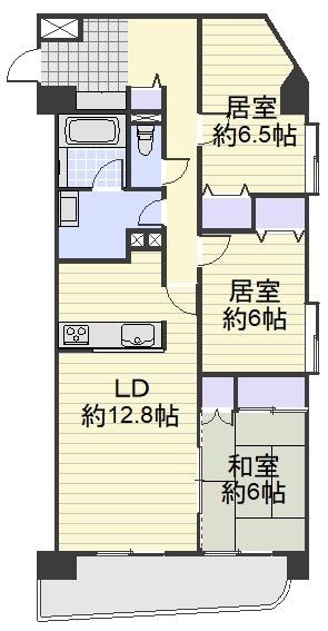 | 間取り | 3LDK | 間取り内訳 | LDK12.8畳×1室 洋6.5畳×1室 洋6畳×1室 和6畳×1室 |