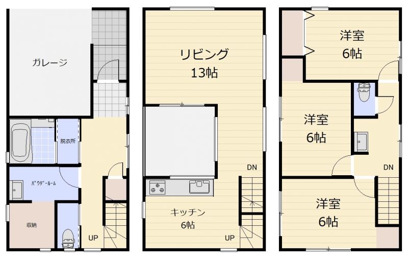 | 間取り | 3LDK | 間取り内訳 | 洋6畳 洋6畳 洋6畳 |